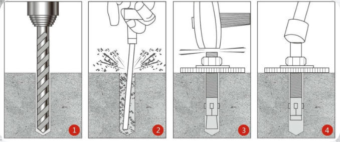 IF MOUNTED TO CONCRETE WEDGE BOLTS ARE USED,